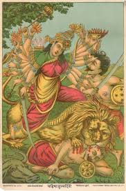 In art, I found the same pattern. Raja Ravi Verma's goddesses are luminous but compliant; they gaze downward even while holding weapons. The visual tradition itself betrays the discomfort with divine rage. It is not blasphemy to paint her beautiful, but it is dangerous to paint her unapologetic. In film: Meenakshi in Kaali Kalyanam, Deepika's Padmavati, Nushrratt's Chhorii, rage repackaged as sacrifice. Even textbooks taught a domesticated version of mythology: Durga smiling demurely after killing Mahishasura; Draupadi grateful to be saved rather than furious about being disrobed.